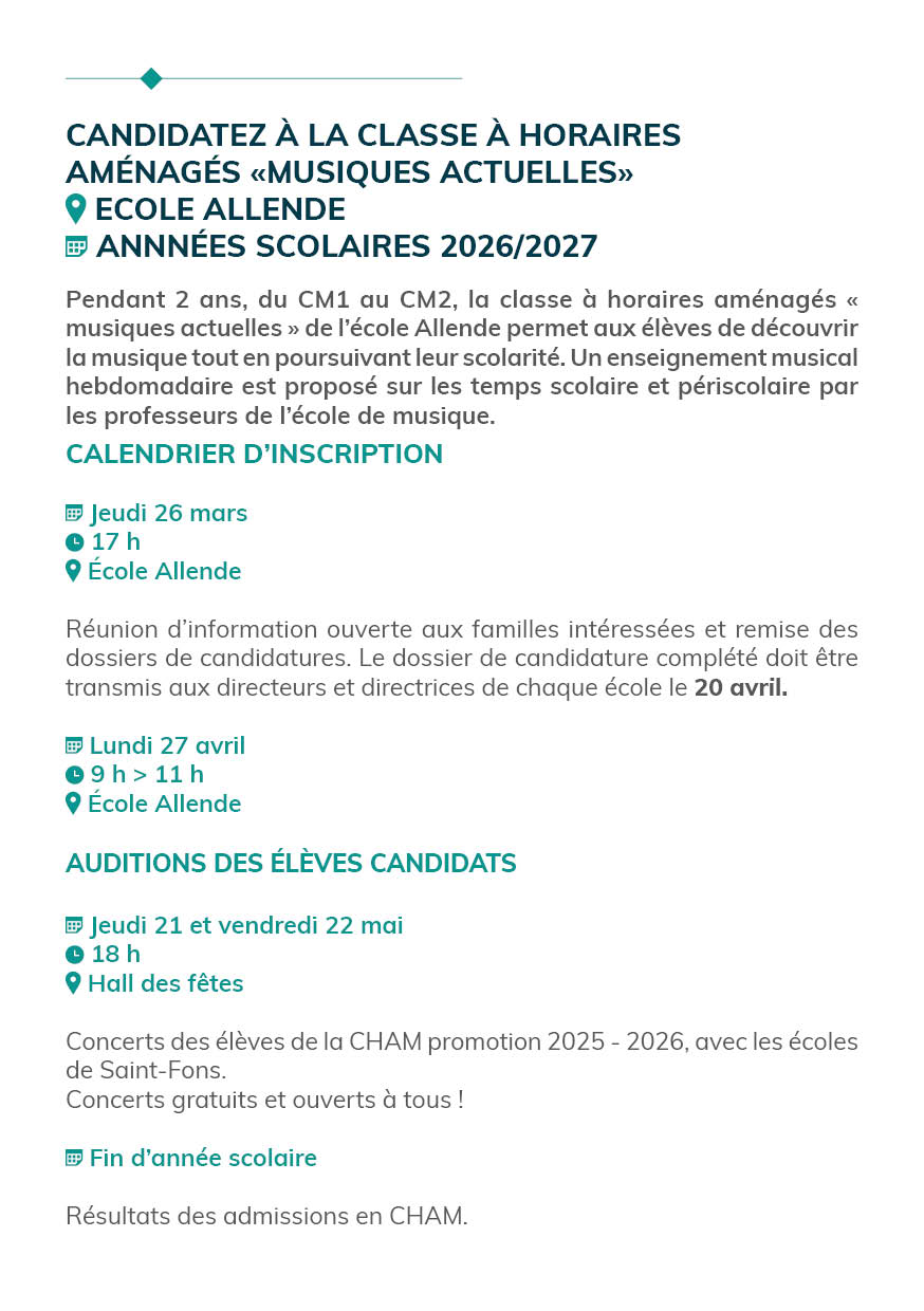 Recrutement pour la CHAM à l’école Salvador ALLENDE par Claire GENECHESI|Publié 13 mars 2026 Cliquez sur les petits ronds en bas du flyer pour voir les informations au VERSO.